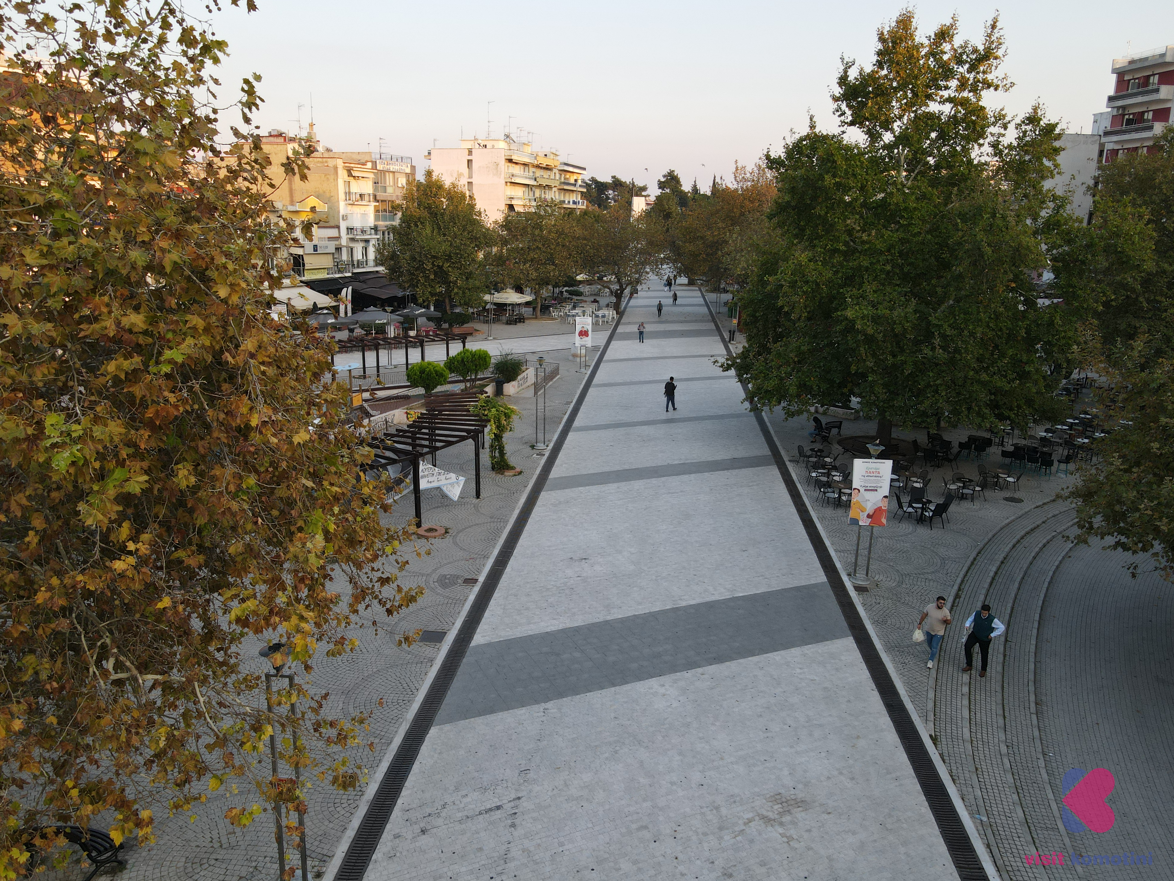 Η καρδιά της πόλης θεωρείται η κεντρική πλατεία της Κομοτηνής (ή πλατεία Ειρήνης) με τις άπειρες καφετέριες, οι οποίες σφύζουν από ζωή κατά τις μεσημεριανές αλλά κυρίως βραδινές ώρες εξαιτίας του μεγάλου αριθμού των φοιτητών που ζουν και σπουδάζουν στην πόλη. Η πλατεία έκτασης 19 στρεμμάτων είναι πεζοδρομημένη και ασφαλής για τη κυκλοφορία των παιδιών.
